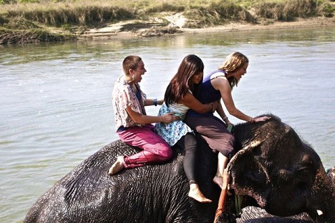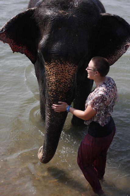 Me wearing a Nepalese suit / Me, Krystle, & Caroline on an elephant!