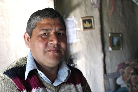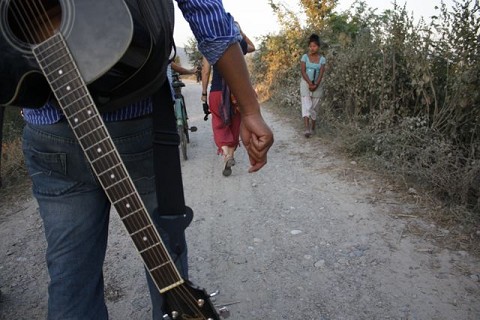 Pastor Amar with Krystle's guitar, walking home from a house visit