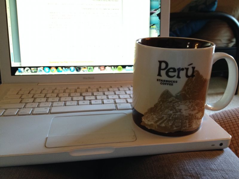 I’m working from home today – I have Skype calls with people in Malaysia, the U.S, Costa Rica, Guatemala, Panama and El Salvador – and the comfort of my coffee table and couch seemed irresistible.