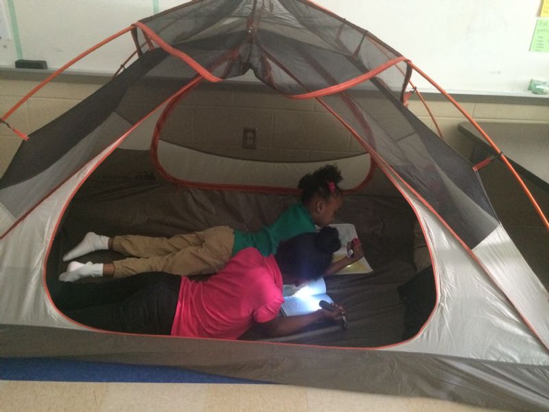 The Thursday before spring break, the kiddos came in the classroom in anticipation of the “big surprise” that I wanted to share with them. I had spent the night before laying in bed thinking of ways to tell the kids that I was going to be having an adventure next year and that I would not be in Nashville. With the help of others, I decided to set my new home up in the classroom so that the kids could experience what my life was going to be like. I also borrowed a former World Racer’s backpack, sleeping bag, and mattress pad to show them.
