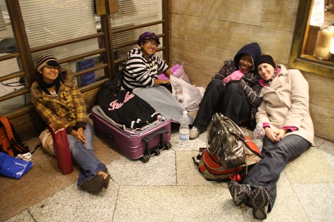 I was wide awake and anxious. 7 hours from now, I’d be in ITALY. We prayed as we walked to the bus station, hoping that our shuttle to the airport would be there with us on the list, as we had yet to receive a confirmation about our shuttle. We were hoping to catch the tram from the hostel two stops to the train/bus station…but ended up walking the 5 blocks – about a 15min. walk – with our packs! We all made it and had a squeal of delight when we saw the “Wizz Air” bus loading.