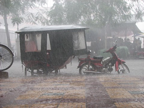 A new adventure came when we were arriving in Phnom Penh…we heard the thunder and saw the lightening. Downpour. We were still on the bus. It didn’t let up, but rained even harder. We quickly brought our luggage inside as we watched the streets FLOOD with rain water…covering the roads and rising above the sidewalks! Such a difference from the heat that we experienced a short month ago!