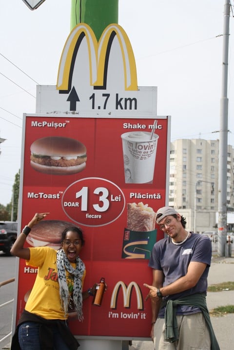 We were so excited when we reached McDonald’s! As we sat eating our food and being able to quickly get online one last time, we noticed a man in a Jesus Saves shirt! Curious, Chaps went over to talk to him. Kim and I continued to eat and all of a sudden heard a few people talking English. Usually, we wouldn’t think anything of it, but this time, we were curious. It wasn’t broken English – meaning, it wasn’t a second language they were speaking! I got up and approached this group of people, to find out they are American, from Georgia and have been in Moldova the last few weeks on a missions trip! Kim came and joined the conversation as we stood in the middle of McDonald’s talking about God and what he has called us to do – telling them about the World Race. It was such a blessing and a divine appointment