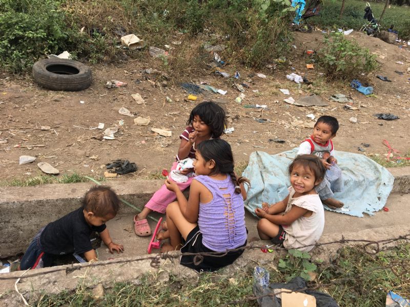 These children were sitting outside the landfill waiting for their moms to get done working in the landfill.