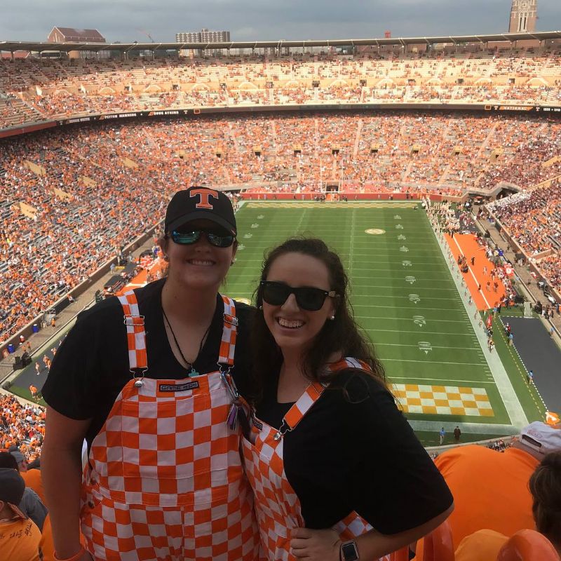 We made it to a TN game this year! My roommate, her parents, and I road tripped it up to Western NC and drove over to Knoxville to see a game in Neyland Stadium.  So this is my roommate, Michelle, and I (and yes the overalls are necessary). Go Vols!  October 2017