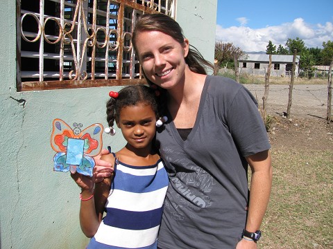 A sweet girl, Masiel, holding a craft we did of butterflies. It signified how we are a new creation in Christ.