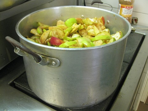 The baking part comes in in the form of crates upon crates of apples!! What started as applesauce day- cutting out