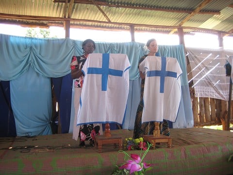 I’m a real African now!! YAY! Angela and I had dresses made with traditional Kenyan fabric and debuted our attire for church this past Sunday. πŸ™‚ We were told we looked very “smart,” which is the term they use to say someone looks “cute.” Awww. πŸ™‚