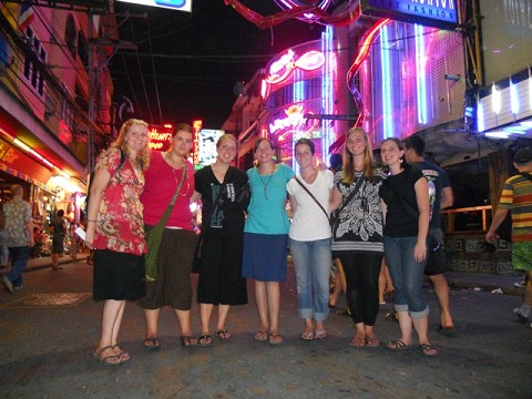 The girls on “Walking Street” during our treasure hunt. (From left to right: Sherri, BP, me, B.Jax, B.Cox, Courtney, and Heather.) Walking Street is a famous strip of bars/ prostitution in Pattaya that shuts down traffic at night so people can walk freely around the streets. We made our way there after walking along the beach to pray and speak more life, love, and truth into the people who find themselves there; while walking we avoided requests to look at menus (not for food… think about it) and invitations into bars as customers. God, your redemption and LIGHT need to come to this city… and quickly!