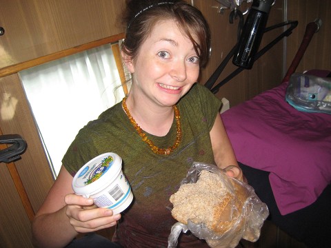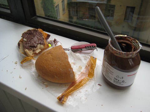 Nutella and bread… SO GOOD! Notice the Swiss Army Knife. Yea, we’re hardcore. 🙂