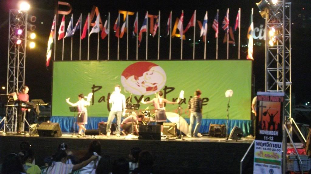 When we arrived in Pattaya, we were taken to Pattaya Praise 2010, a gathering of 7 churches for praise, worship and prayer over the city. We went straight to city hall where we worshiped from the roof for 6 hours straight. The mayor even came to thank us for our prayers and join us…that’s now the 2nd mayor we’ve met from 2 different countries! After a quick dinner, we hopped on the back of a truck (which is a taxi here!) and took off for Walking Street and the pier.