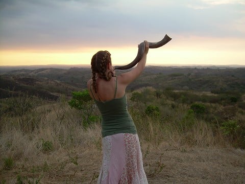 After a relaxing morning and afternoon horseback ride today (which was one of my goals for this month!), we went and ate lunch, then came back and went hiking through the hills outside of Greg and Sam’s home. It is gorgeous out here…rolling hills as far as the eye can see, with a view of the Pacific Ocean in the distance. We ascended this little knoll, and were admiring the scenery when Sam came up, carrying a shofar. For those of you who don’t know what that is, it is a ram’s horn that was used by the Israelites in the Old Testament as an instrument to be blown to signify a battle or victory. It is what the Israelites blew on the 7th day to bring down the walls of Jericho. It is very symbolic of the Lord’s power and might.