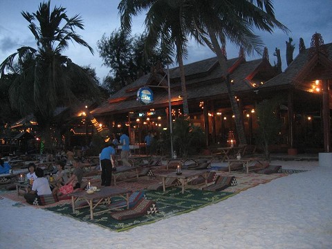 -These Asian lounge chairs that you lean back on that were always set up right on the beach itself