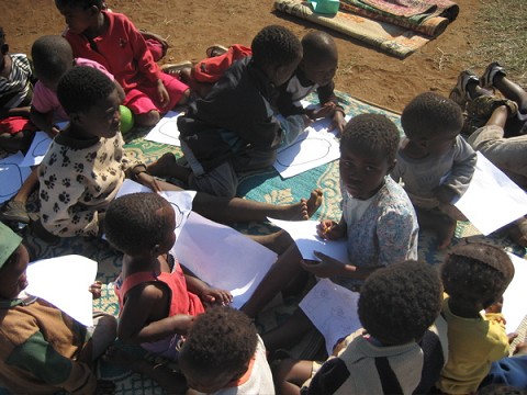 First, Emily and I went back to the care point that we had been visiting. A care point is basically a hut or biudling where the local kids can come and get fed one hot meal. For some of them, this is the only meal they receive, and most of them walk very long distances to get there. It broke my heart to see a little 4 year old carrying her younger sister, who could only have been a year old, on her back. The level of responsibility these children live with is unbelievable. So, once the kids get to the care point, they just sit there and wait. There is nothing and no one to entertain them. They sit under the hot African sun, until a woman comes to cook the food. These women are so awesome for the way they volunteer to cook for the children. Without them, the kids would go hungry. Most of the food comes from worldwide organizations, and Americans greatly contribute to this need. This day Emily and I brought coloring sheets and crayons for the kids. Because they are used to entertaining themselves with nothing but dirt and rocks, and becuase many of them had never seen a crayon before, we almost had to persuade them to color! After a little demonstration, they caught on, but were very careful not to break their new gifts.