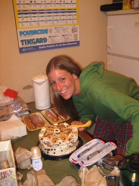 After dinner, everyone surprised me with a birthday cake and gifts. The gifts were hilarious and let me known once again that I’m not in Kansas anymore! What other birthday would I be excited to get deodorant as a gift? I also got bubble bath (wishful thinking, definitely, but we’re talking about a wonder-working God here!), pens, and of course a lifetime supply of chocolate (which I have learned to horde until travel days!). Oh, and I forgot to mention that my team woke me up at 6:45 am to throw balloons on me and sing, much to the frustration of the rest of the campers! They were very good to me the entire day….I am truly blessed with this World Race family I have been given.