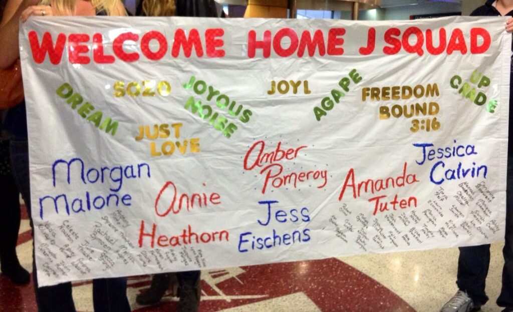 The moment J Squad touched down on U.S. soil…and were greeted with this amazing sign by Amber’s mom.
