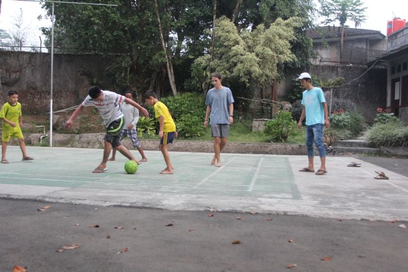 I spent the majority of my afternoons with the middle school and high school age guys playing soccer. We played on a concrete volleyball court and used shoes for goals. They were insanely good. What blew my mind was some started playing when they arrived in Indonesia. Some of the best kids had only been playing for a couple years and they were out there making me look like a fool. Somewhere along the line they mastered the art of playing soccer in flip flops. If you’ve never done it, give it a whirl. Its different. They were running circles around me in flip flops. Others played barefoot and I took that route, it was a lot easier than trying to run around in flip flops.