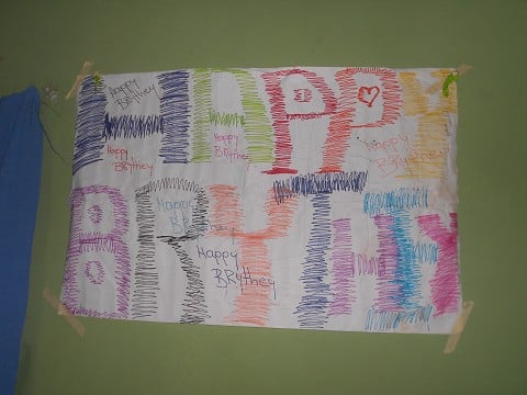 Kathryn woke me up at 8:30 "Happy Birthday Jessica … Breakfast time!" She had made me a nice rainbow card and it was sitting at my breakfast spot. During breakfast the children all greeted & hugged me again. Fernando made me a picture frame out of pop cycle sticks … So precious!! I'll print out some pics of him and I before I leave … Leave him one and put one in my frame 🙂 I will prob leave all the kids a picture and a note actually.