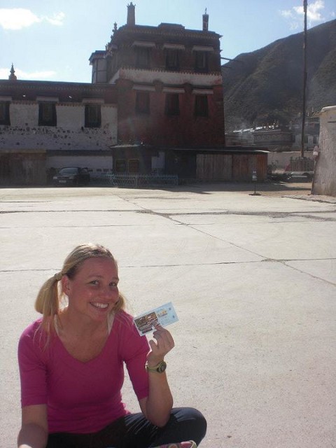 We stood in each temple struggling to make out even a few words and gain some understanding of this place. In each temple was a large Buddha statue, burning candles, offering dishes with money, and place settings of yak butter. The aroma of burning earthy incense and yak butter was strong and different. The girls, especially Maggie, were really hating the smell. If I tried hard the incense almost smelt like a camp fire … ALMOST. The yak butter just smelled like strong cheese. The monks had been fasting for 11 days and tomorrow they would all come in and eat the yak butter. The monk joked that it is their Tibetan chocolate. They mix the yak butter with sugar and eat it. YUCK! Just mention the words “yak butter” if you need a good laugh around Maggie! LOL She cracks me up with her yak-butter-gag face.