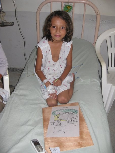 We go around to say hello to all of the children and pass out coloring books and colors to the ones that want them. Many of them have IV’s in their arms and so their mothers who sit right next to the beds, help them to color. They have absolutely nothing to occupy their time here, so coloring a doubled sided paper full of pictures is heaven to them.