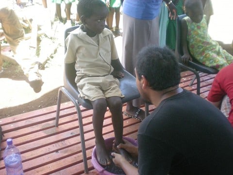 The GoGo’s organizing the children Brian washing one of the boy’s feet