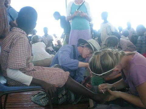 Maithili and her mother cleaning cuts and wounds Me with some of my favorite girls waiting in line for shoes