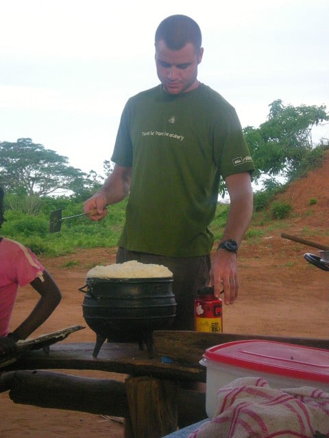 -In Mozambique, we cooked over an open fire with canned food for dinner, lived off of bread we made ourselves with peanut butter for breakfast and lunch, and had NOOO bathroom facility