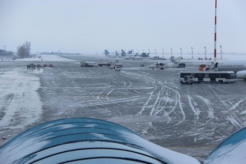 Day 155: 5am- Flight lands in Istanbul, Turkey. 7am- Flight leaves for Romania. 9am- Flight lands in 2 feet of snow in Bucharest. 11am- Get on a bus to the train station. 12pm- Arrive at train station (with limited heat and no winter clothes). 10pm- Get on an 6 hour train ride. 11pm- Fall asleep on a train somewhere in the middle of Romania.