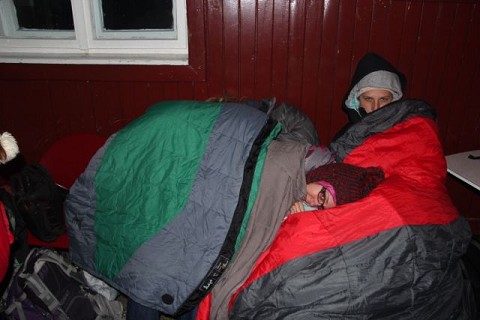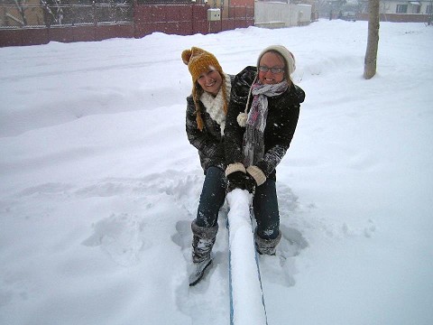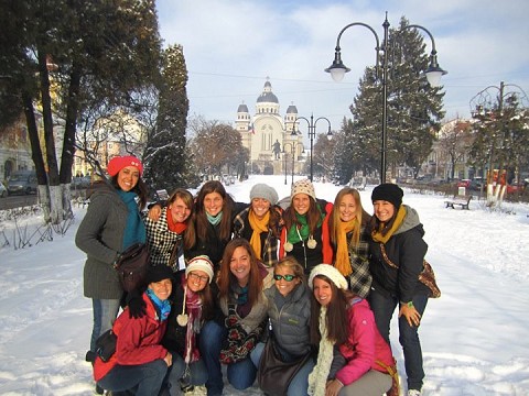 Day 156: 4am- Train stops in the middle of a snowy field and kicks us off (many of us are still wearing summer shoes). We hike though the field with our gear and sit in an unheated, dark train station freezing for several hours. 6am- Get on a second train to Tigra Mures, find our seats and then the conductor starts yelling at us to get off the train. We then realize that we got on the wrong train and have to get off and walk down the tracks through the snow to the correct one. 8am- Arrive at our destination city, but wait for 2 hours in another train station for our bus to arrive. 11am- Finally arrive at our house for the month… many of us went right to bed.