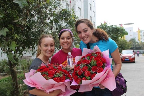 Day 47: I spent the entire morning editing video. In the afternoon I went with Megan and Sara to teach English at two different schools. One of the schools gave each of us a bouquet of flowers as a thank you.