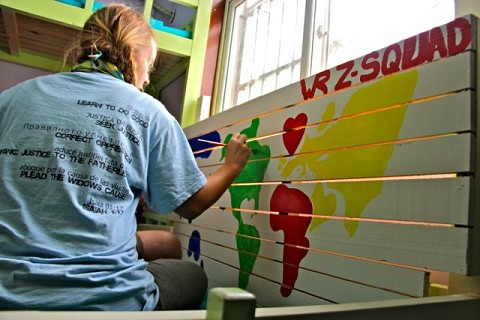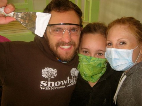 Day 57: Both teams spent the entire day painting at House #2. Matt, Dusty and I finished the bench for the girls room.