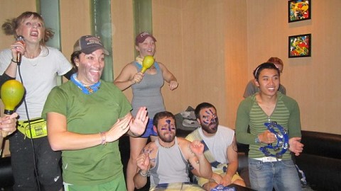 Day 61: Matt and I had to edit video the entire day. At night, both teams went out to dinner and video karaoke to celebrate Halloween (it was already November 3rd). Sara and I dressed up as Matt and Dusty.