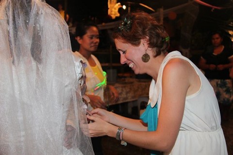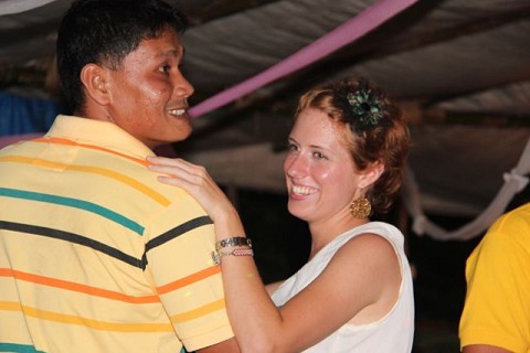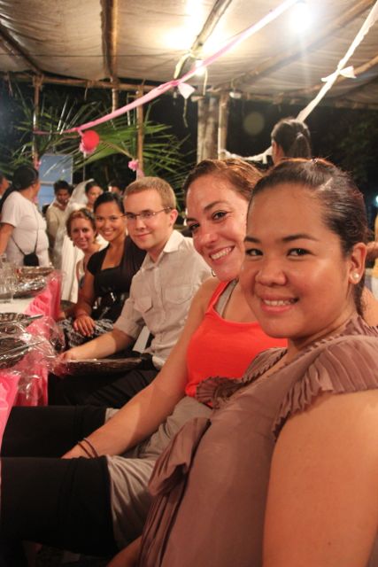 On a positive note, I did get invited to dance during the bride and groom’s friend dance. Imagine the shock on my face when a cute young Filipino guy grabbed my hand and pulled me into the middle of their dance circle. If I didn’t stand out enough before (sitting among my team), I certainly did when I was pushed into the middle of the circle. One blond haired white girl surrounded by ten people with tan skin, chocolate eyes, and black hair. I did the only thing I could think of…. the sprinkler.