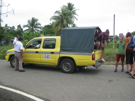 *Taking a truck taxi where we COULD ride in the back and cramming 12 people in it. This truck bed is MUCH smaller than even a Ford Ranger’s bed…oh my. Talk about getting to know your neighbor.