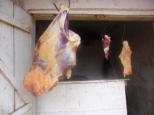 Nile perch (enormous fish) being cut up on the side of the road. At an open air meeting the other day, Erica