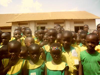 covering his face, and says “muzungu!” (white person) as he walks towards me with arms wide