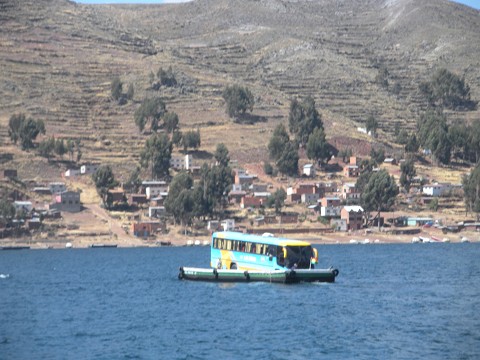 The next day we got up and were off again! La Paz, Bolivia here we come! We’ve already gone across the border and then we come to a stop where they tell us we need to all get off the bus. I’m standing outside the bus looking at this river thinking “umm… are we going around or what’s going on?” Then I see that our bus with all of our humongous packs is being driven onto a boat that I possibly could have built myself. I’ll admit I was a little nervous for our packs. At least I had my passport on hand just in case something did happen, but after about 20 minutes our bus made it safely across. (As did the squad but on much safer looking boats.) This is how our bus got across the river!
