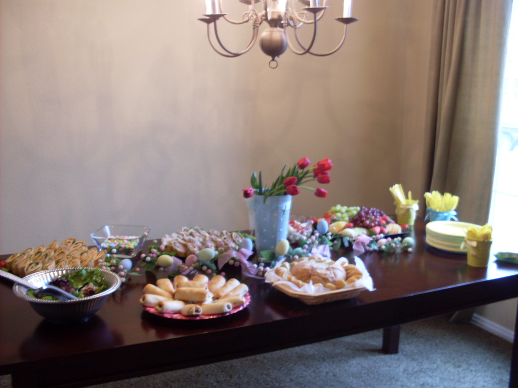 Also this past Saturday was my spring-themed support raising brunch & dessert party!  I would  like to thank everyone who was able to attend, and for those who couldn’t, I truly thank you for your prayers! For those who couldn’t make it, I was literally moved to tears at the beauty of all of this coming together. I could not have asked for a better party! The food was delicious (and plentiful!!), the decorations look lovely and the turnout was wonderful–over 20 people from Preschool Pals, JCT 56 ministry, Women in the Word, my community group and the Wednesday night bible study! Thank you all for coming out and rallying behind me on this next chapter of my life! I love each and every one of you and I THANK GOD FOR YOU! I would also like to extended a wonderful thank you to Teagan, an alumni  from the Jan 08 World Race for coming out & being there to answer questions and share her perspective! She has also been so kind enough to offer to accompany me shopping for my gear and has already answered many of my questions!! Also, a thank you to Austin, an upcoming World Racer (Aug. 09 team) to be there to support me as one who knows what I’m going through with the support raising!!  $900 was raised right there on the spot!! THANK YOU JESUS! Everyone who attended also received a brochure with more information on how they can support me, so please continue to be in prayer that people would not forget about this mission and that it would be on their hearts to faithfully give.