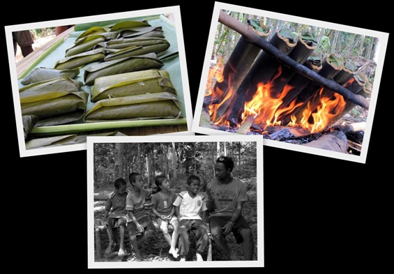 I like how work here is a family event.  We usually walk over to the jobsite in the mornings and as we go, many of the children follow us and play in the river and hang out while we are working. When we get there, the village women are already weaving together palm branches for what will eventually become the roof. Eventually some of them also start to make lunch for everyone. They begin by wrapping rice in leaves and then packing them into bamboo that is filled with water and then put over a fire. When meal time comes we all sit at a long table constructed of bamboo and then unwrap the rice and eat everything with our hands. One of my favorite things is being able to partake in local traditions and live the same way the locals do.