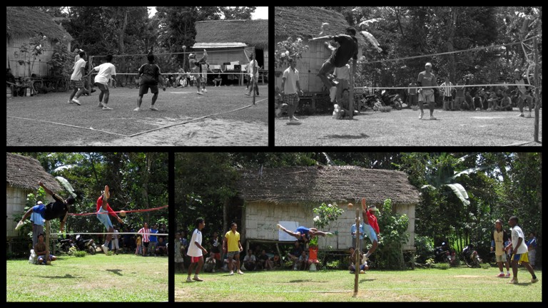 When we first got here the kids wouldn’t even come close to us and some of the young ones would even cry when we got near them. Over time though, most of them have warmed up to us and we are able to interact and play with them. We love to hang out with the kids and go swimming in the river, play frisbee, play guitar, or just chase them around the village for awhile. Another game the older guys play is something called Sepak Takraw. This game is crazy. It’s hard to describe, but you basically play on a volleyball court…except you use a harder, smaller ball…and you can only use your feet. They are even able to spike the ball, but you have to jump in the air and almost do a flip to spike it over the net. I’m not very flexible, so I tend not to be in the spiker’s position…they usually put me as the server or the setter since I cause the least amount of damage in those spots. Here are a few pictures to give you an idea of what I’m talking about…