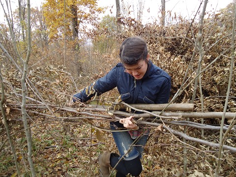 We gathered small trees that had been cut down in the days before and stacked them into piles. We MAY have taken a few breaks and gotten some really good girl conversation in…but hey, we’re girls, that’s what we do, even when we’re being lumberjacks out in the woods.