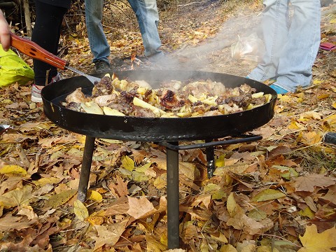 We had a delicious lunch of pork (with quite a bit of fat in it, there was probably more fat than actual meat) and potatoes lovingly cooked over an open fire. We dug in with some yummy bread and ate it up!