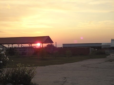The same sunset as before. The view is towards the dairy farm beside the Noble House where we are staying at Caminul Felix