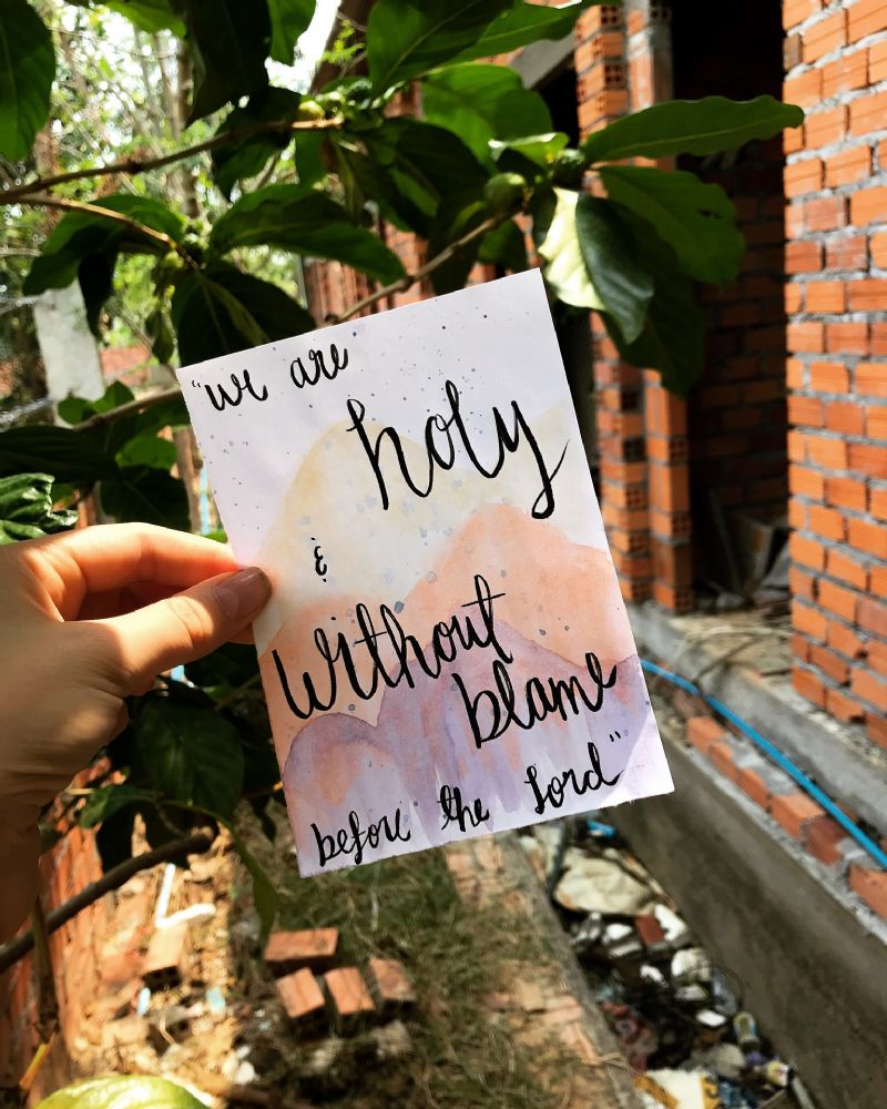 What did I do to deserve such a title. It’s hard for me to believe this about myself, that I AM holy and without blame. I can encourage others to realize their worth and value but when it comes to mmyself I just can’t seem to believe it. How am I Holy and without blame when I have a room filled with shame and regrets. How do I believe that God loves me when I can’t seem to love myself in every situation. Why do I blame myself when God already said I am without blame. When God sees us He only sees the perfect image of His son Jesus Christ. Because Jesus took the blame for us He took all the shame, guilt, and the punishment for us when we deserved it all. And all He asks of us is if we believe it? If we truly believe it enough to give our lives to Him. So I don’t deserve such a title but I will gladly accept it because I believe in a God that is truly Holy and without blame.