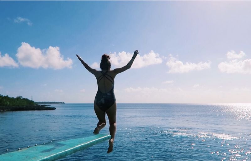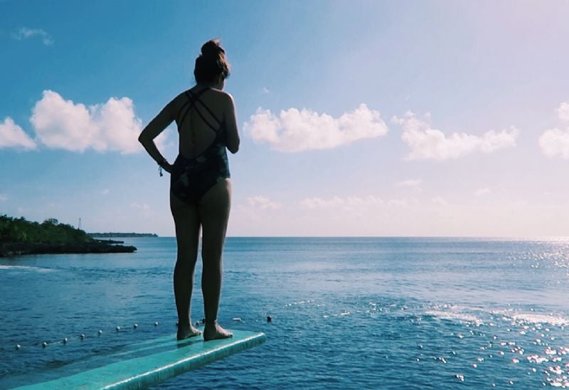 One day I’ll face that big rock in Waimea Bay. But for now, I’m proud of the jump off of a diving board in the Caribbean Sea.