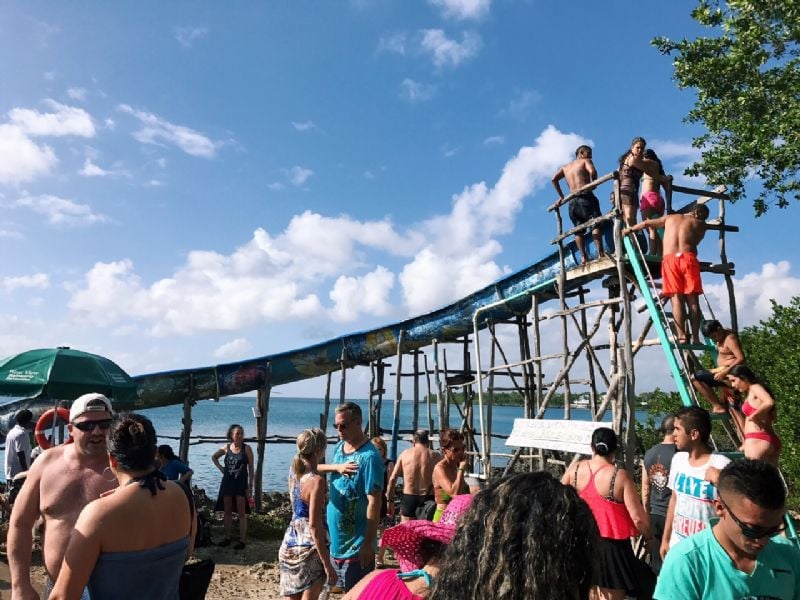 We were so eager to see a part of the island that we had not seen yet. We walked through the gates to this little place of adventure and saw a diving board that went straight off the edge of the island into the Caribbean sea below. Beside the diving board was a huge slide that went into the same vast sea. The other six girls on my team lit up with excitement. I on the other hand could feel knots forming in my stomach and my heart began to race. We changed into our swimsuits and the girls went straight to the diving board. Initially I said I’d stay out of the water to watch our things – this was a classic move of mine. But our host family kept insisting that they’d watch everything which left me out of excuses. So to the line I went. It felt like less than a second and it was already my turn. Before I could even step on the board, I turned away and said I couldn’t do it. The girls on my team kept encouraging me and all I could really do was try my hardest to hold back tears.