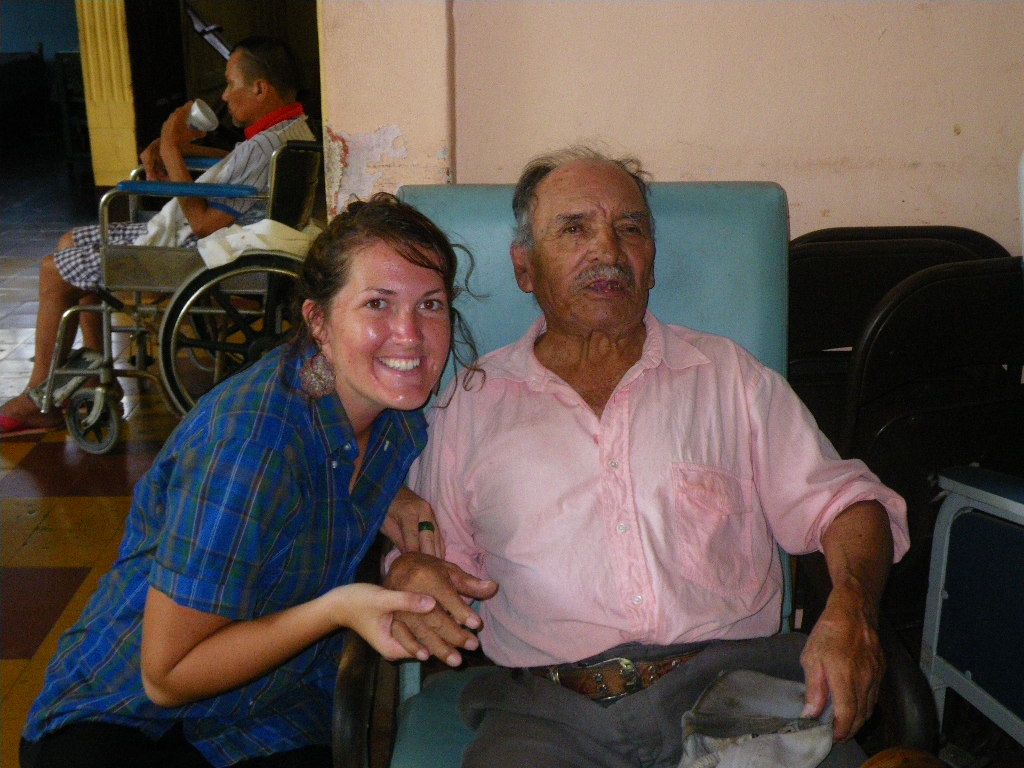 At the nursing home with Mr. Herrera. He’s blind.