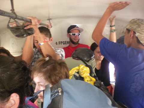 Since we got here we have gotten very used to piling into buses, vans, or the back of vehicles! One time on the bus my foot was right next to a huge hole right above the tire~ I'm glad it didn't slip! This is how we get around every day!