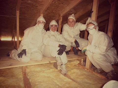 The first construction job I had was cutting trim for windows. After that I mudded windows, then walls, then corners in several rooms. My next job, and my favorite one, was insulation. With a couple different teams on different days we really got a rhythm going, and made a ton of progress in the attic. It just goes to show that you never know what you might like doing, because at first when I heard we were going to be working with insulation I was pretty apprehensive. The thought of getting fiberglass slivers wasn‘t very enticing, and since I have claustrophobia the thought of working in an attic was a little daunting. However, our fancy marshmallow space suits protected us from getting scratched or itchy from handling the ‘material‘, and working in the attic didn’t feel as smothering as I thought it would! Now I’ve got a few skills under my belt for when my Dad decides to build his next house, too. 🙂