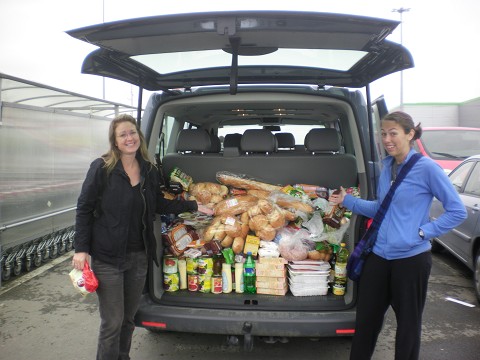 One of the things this month that was different was that we cooked for ourselves verses having meals provided by our contact. With three teams here, plus squad leaders, that’s 25 people to shop, cook, and clean up after as a whole. We got a system down from the beginning that has worked out really well, even though it is no small task to implement it. Each week, two people from each team plan out what meals they will cook and go shopping for that coming week’s groceries. We know our budget and what days our team is responsible for cooking. The sight at the grocery store with our three carts full to the brim is something to behold! It takes a while to check out, and then getting all the food into the back of the van is a process, especially because we don’t have the convenience of grocery bags because they charge extra for them. Once we get back to the house we make many trips to unload everything and carry it to the kitchen, then label everything by team, and the final step is trying to fit it all into our designated cabinet, and refrigerator/freezer.